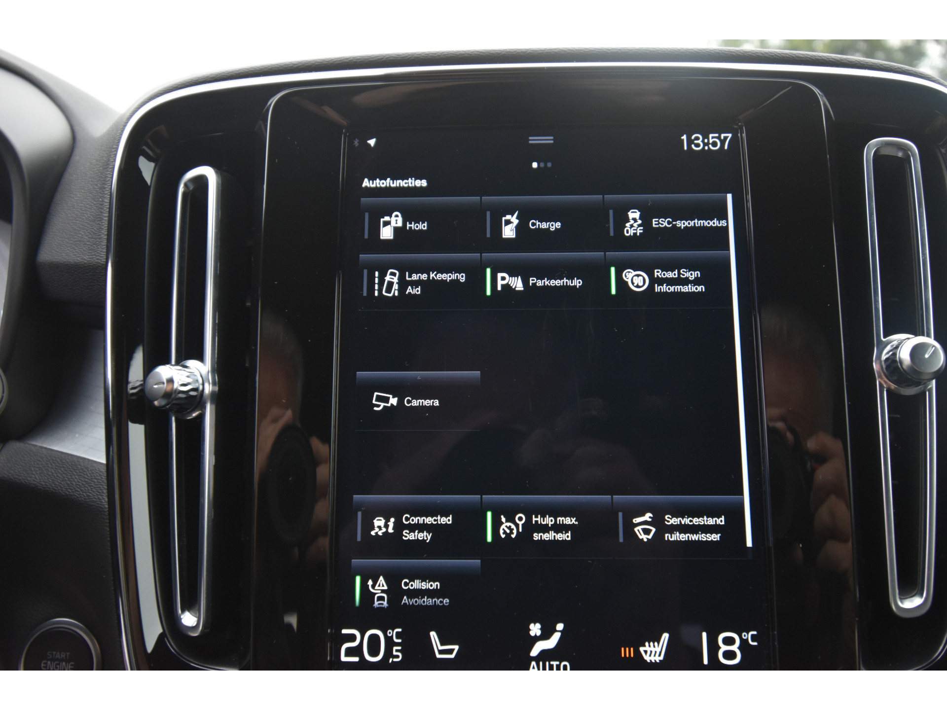 Met de nieuwste technologieën aan boord is deze Volvo in staat om zelf te reageren op potentieel gevaarlijke situaties op de weg. U rijdt ook veiliger omdat deze auto voor u de verkeersborden langs de weg kan lezen. De belangrijkste borden worden op uw instrumentarium geprojecteerd, zodat u ze niet kunt missen. Indien u onbedoeld de rijstrook lijkt te verlaten, reageert het Lane-keeping systeem meteen en corrigeert. De forward collision warning geeft een botswaarschuwing als een aanrijding dreigt met een voorligger. Verder is deze auto uitgerust met hill hold functie, brake assist, vermoeidheidsherkenning en bandenspanningcontrolesysteem.