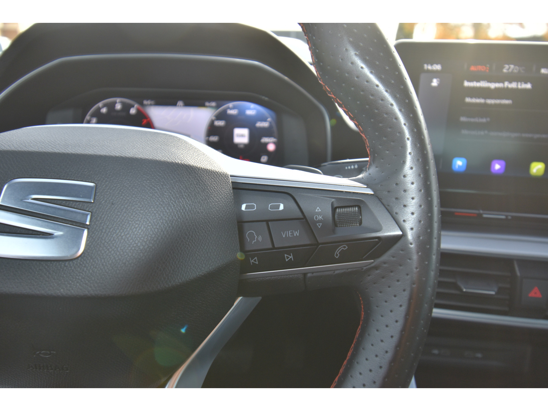 Slim, efficiënt, veilig en goed geïnformeerd rijden? Het digitale dashboard vertelt u alles wat u wilt weten. De achteruitrijcamera laat duidelijk zien hoeveel ruimte u nog heeft bij het inparkeren. In deze auto kunt u de belangrijkste functies bedienen met uw stem. Oliepeil, bandenspanning, sloten en andere functies zijn via een speciale app overal te checken dankzij Connected Services. U weet altijd waar u moet zijn, dankzij het navigatiesysteem. Ook is de SEAT uitgerust met: automatische airconditioning, sportstuur met schakelpaddels, DAB ontvangst, regensensor, cruise control en automatisch dimmende binnenspiegel.