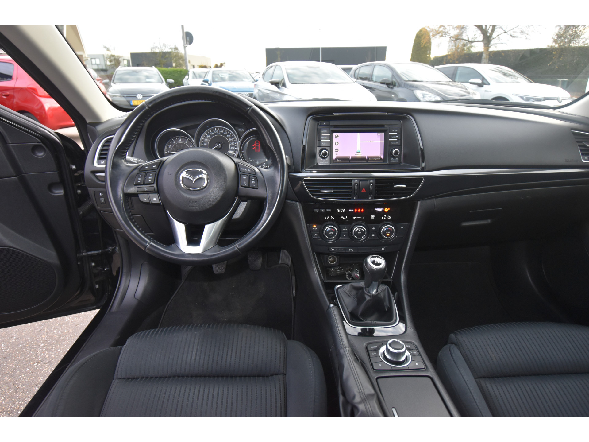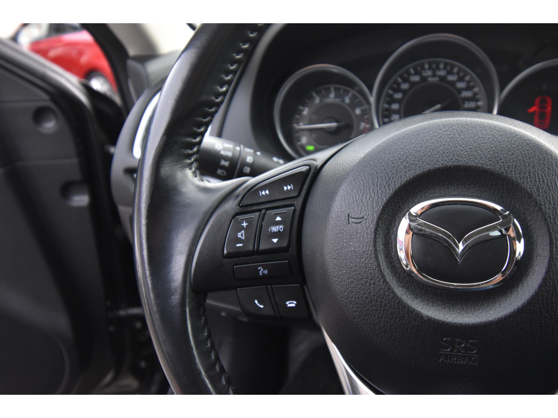 Laat u onderweg niet afleiden, de bediening van het audiosysteem en ook het navigatiesysteem gaat met knoppen op het stuur. Bij de luxe van deze auto hoort ook electronic climate control. Geen parkeervak is te klein dankzij de assistentie van de parkeersensoren. Achter het stuur van deze Mazda bent u niet alleen. De auto kijkt als het ware met u mee tijdens de rit. De regensensor schakelt de ruitenwissers in als het nodig is en de automatisch inschakelbare verlichting doet de lichten voor u aan. Cruise control is ook een van de meegeleverde opties. De Mazda is standaard voorzien van: automatisch dimmende binnenspiegel, isofix-aansluiting, centrale deurvergrendeling met afstandsbediening, boordcomputer en verstelbaar stuur.