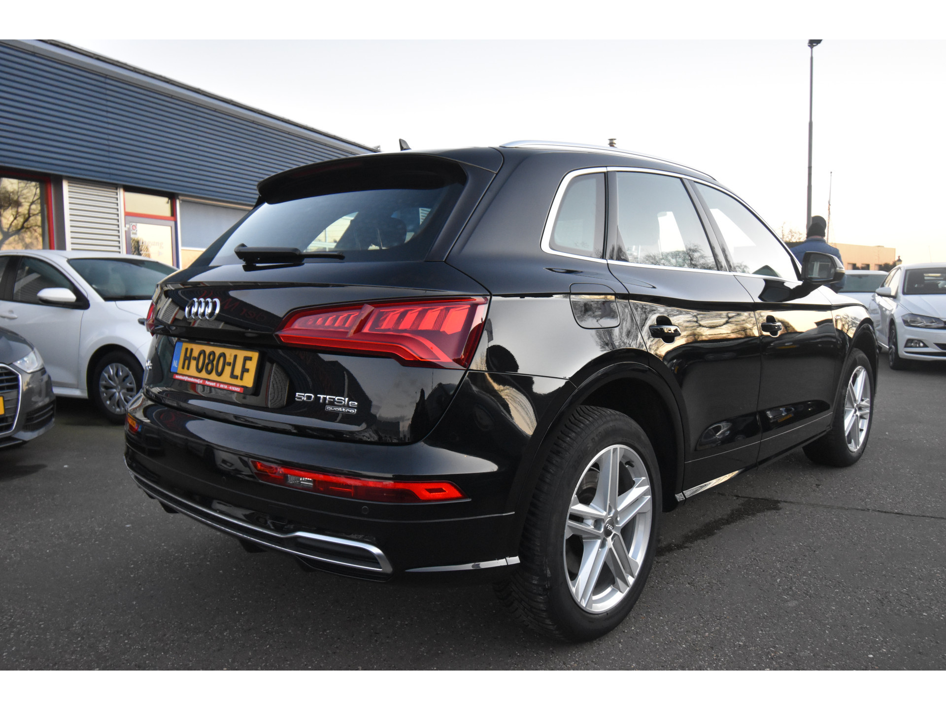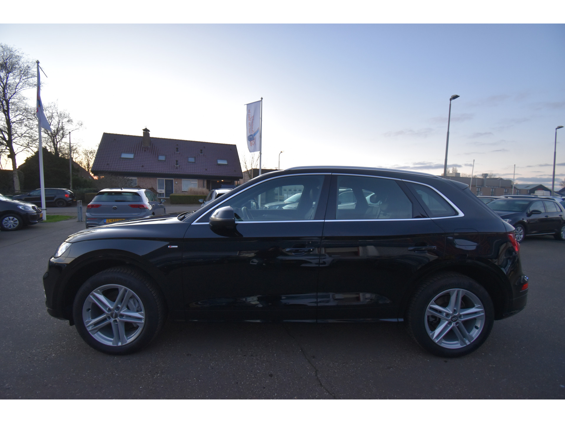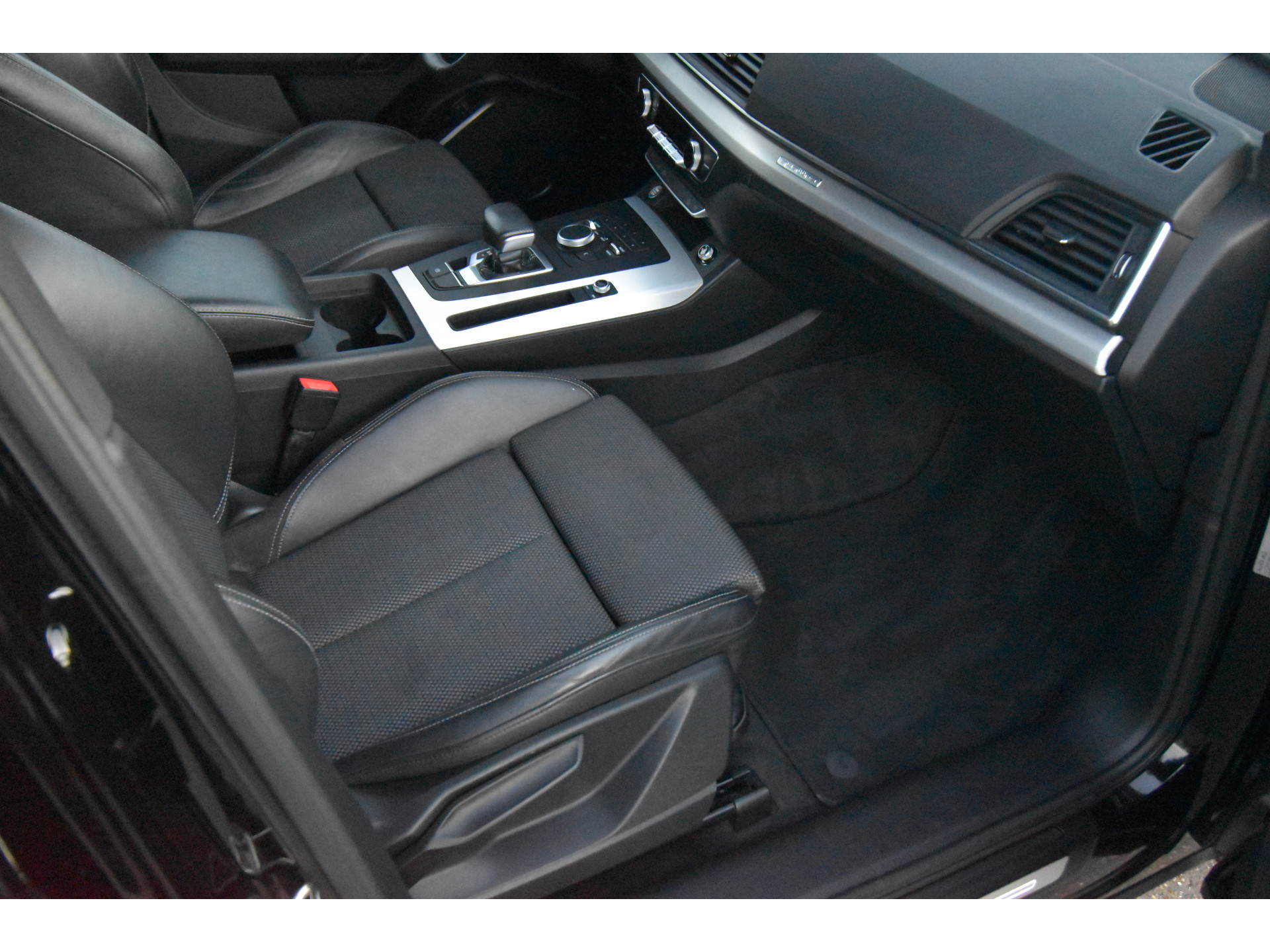 Het is niet alleen de bouwkwaliteit waar Duitse auto's om bekend staan, maar ook de rijkwaliteiten. Dat merkt u achter het stuur van deze Audi Q5. De verschillende elementen van de S-Line styling accentueren de dynamische lijnvoering van deze Q5. Onder de motorkap ligt een zuinige viercilinder benzinemotor. Chauffeur en bijrijder zitten stabiel in de scherpe bochten door de sportstoelen. Een handige voorziening op deze auto is de elektrische achterklep die u op afstand kunt openen. Bij de uitrusting van deze Audi horen onder meer 19 inch lichtmetalen velgen, LED koplampen, halflederen bekleding, warmtewerend glas, zwarte hemelbekleding en in delen neerklapbare achterbank.