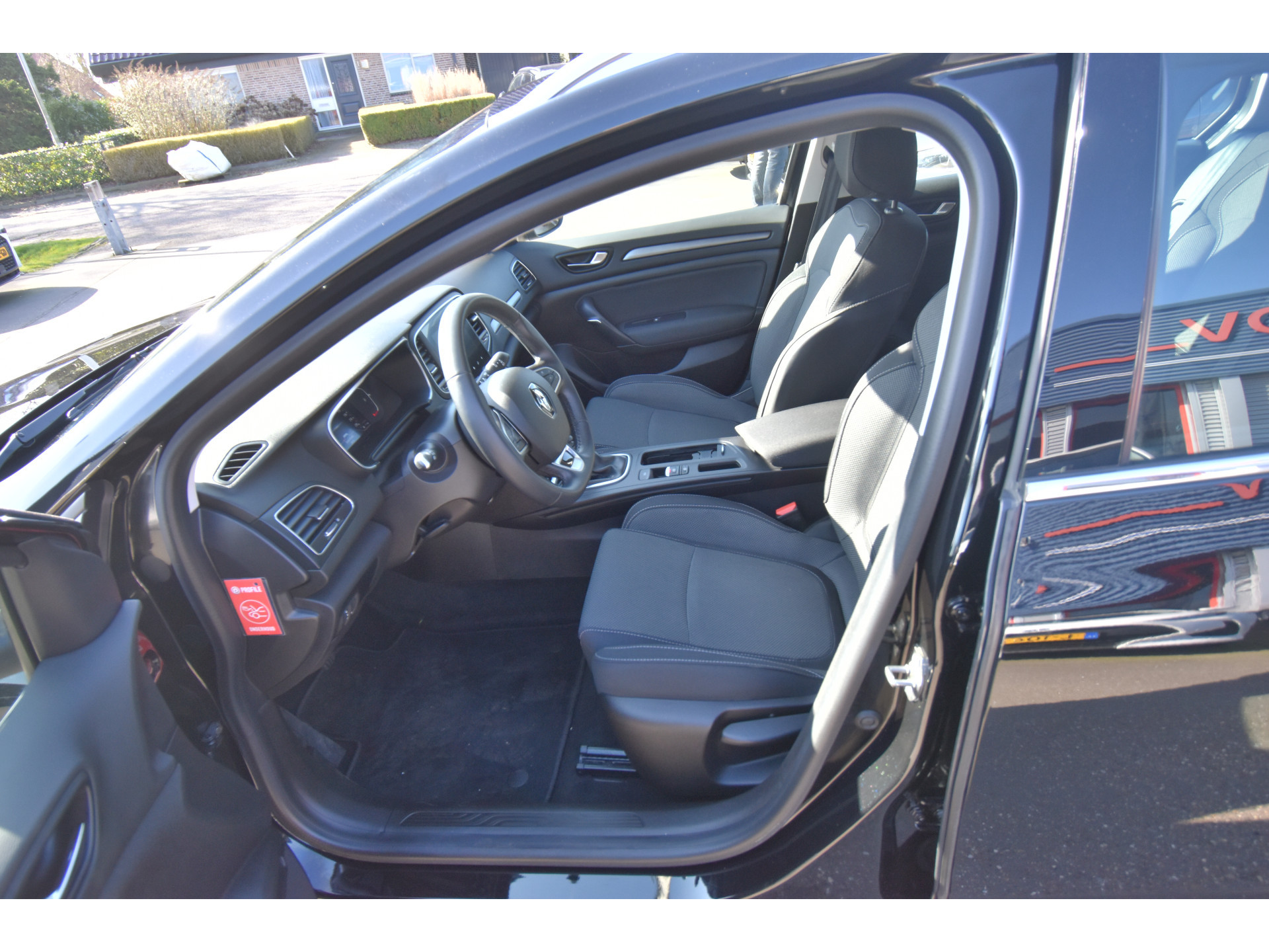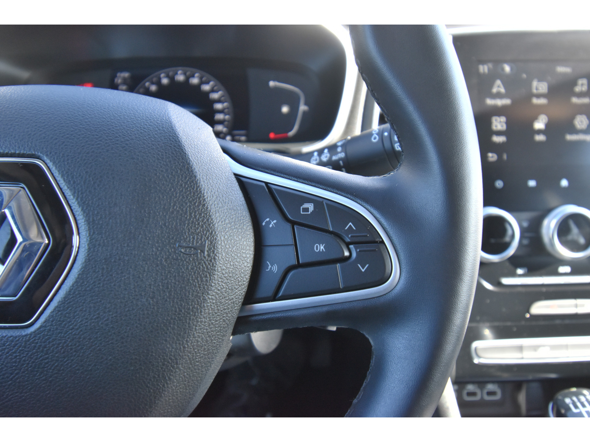 Alle functies voor een veilige en zuinige rit worden overzichtelijk weergegeven op het digitale dashboard. Gemakkelijk en veilig is de bediening het audiosysteem en het navigatiesysteem met knoppen op het stuur. De audio-kwaliteit is geweldig, dankzij de DAB-ontvangst. De automatische airconditioning zorgt voor een behaaglijk klimaat in de auto. Boem is ho? Niet bij deze Renault Mégane Estate. De piepjes van de parkeersensoren waarschuwen u op tijd voor obstakels. Het drukke verkeer eist onderweg al uw aandacht op. Daarom is het goed dat deze Renault is voorzien van diverse systemen die u assisteren tijdens de rit. Een automatisch inschakelbare verlichting neemt het waar als het donker wordt of gaat schemeren, en schakelt dan automatisch de verlichting in. Op dezelfde manier "ziet" de regensensor de eerste spatjes regen en schakelt dan de ruitenwissers in, en als het harder gaat regenen zet hij de ruitenwissers ook in een snellere stand. Ook cruise control, keyless entry, isofix-aansluiting, centrale deurvergrendeling met afstandsbediening, boordcomputer en verstelbaar stuur horen tot de voorzieningen op deze auto.